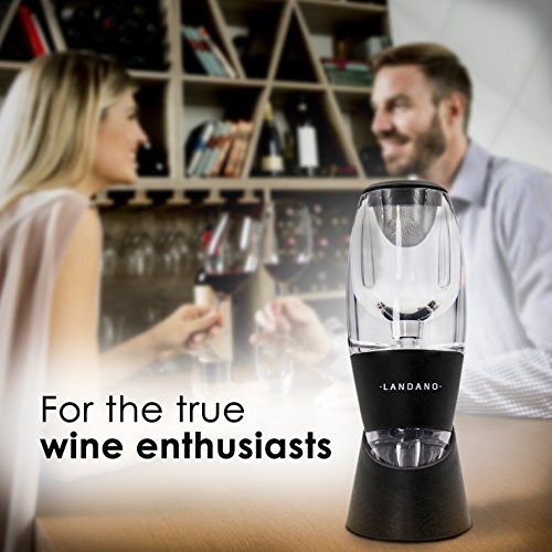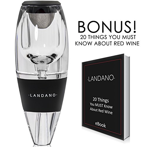 -. Feature : SUPERIOR PERFORMANCE: The Landano Wine Aerator brings you accelerated, effective wine aeration more than ever before. In just one easy step, our user-friendly, ergonomic patented design expedites the "breathing" process through instant aeration. The filter removes sediment, notably of expensive wines which have greater sedimentation. Within a matter of seconds, you'll get a perfect glass of wine, every time! / ENHANCED FINE WINE EXPERIENCE: The Landano Aerator incorporates the proper amount of air into the wine in just the right amount of time. This unlocks the essential flavors and aromatic properties of wines both young and old, for a fuller bouquet, smoother finish and exceptionally pleasurable drinking experience. / ELEGANT DESIGN: With its clean, sleek look, the Wine Aerator will grace any table and occasion. Made of heavy-duty FDA-approved materials, its premium quality shines right through. It's dishwasher-safe for your convenience. / GENEROUS ACCESSORIES: A filter is used with the Aerator Decanter to ensure removal of wine sediments as you pour. Between glasses, simply place Aerator in the neat no- drip stand; when finished, store in the machine-washable black velvet pouch for safekeeping. An instruction manual is enclosed along with our highly informative BONUS ebook, "20 Things You MUST Know About Red Wine." Armed with your Landano decanter, you are sure in no time to become an avid wine lover and connoisseur! / HIGH-CLASS GIFT: Packaged in an elegant red-and- black gift box, the Wine Aerator set makes a classy offering for birthdays, wedding celebrations, parties, Father's Day, or any other special occasion. Present it as a unique addition to a home bar or corporate dinner event.