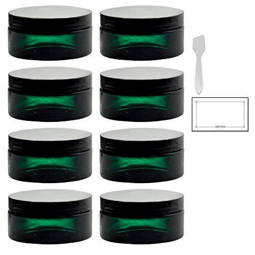Green PET Plastic (BPA Free) Refillable Low Profile Jar - 8 oz (8 Pack) + Spatulas and Labels