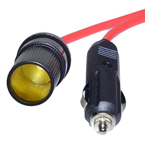 12V/24V 12' (3.6M) Extension Cord with Cigarette Lighter Plug Socket, Extension Cord with Cigarette Lighter Plug 18AWG (12', Extension M-F)