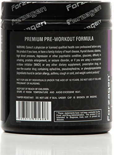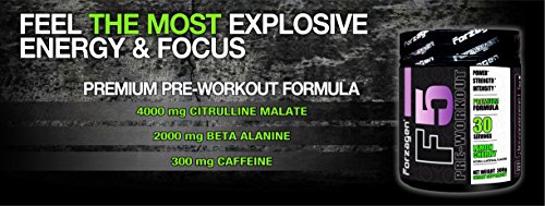 -. Feature : BOOST YOUR ENERGY AND FOCUS -Forzagen F5 Pre-Workout is a cutting-edge supplement that will boost your energy in the gym, and increase your focus and strength throughout your workout. Whether you are weight-lifting or building your endurance, you'll get the most out of our workouts by integrating Forzagen Pre-Workout into your healthy lifestyle. / DESIGNED FOR SUSTAINED, POWERFUL WORKOUTS - Formulated to be both powerful and sustainable, Forzagen PreWorkout was designed by a dozen health-industry experts to help you reach peak-performance without experiencing the side-effects associated with other brands ingredients. You'll get immediate results when taking Forzagen F5 Pre-Workout, which will help you lift more, pump harder, and go longer than you ever have before. / HIGHEST-QUALITY INGREDIENTS THOROUGHLY RESEARCH AND EXPERTLY FORMULATED - Forzagen F5 has an industry-defining supplement's list that is perfectly formulated for optimal results. With 2000mg of Beta-Alanine per serving, you'll get a massive lift in carnosine levels and you'll be able to perform high intensity workouts like never before. / AWARD-WINNING FLAVOR PROFILE, ONE OF THE BEST TASTING PRE-WORKOUT ON THE MARKET - If you've tried other brands, you'll know the Forzagen's difference. We've formulated the product to taste as natural as possible while giving you the flavor and pump that'll get you motivated to workout hard, without unnecessary fillers, you don't have to worry that you're taking a calorie-filled drink in order to get the gains in performance you desire. / MADE IN THE USA - Forzagen Pre Workout is designed, formulated, and produced in the USA. We take special care to ensure each batch of our pre-workout is tested for quality and purity, in order to provide you with the consistency and excellence you've come to expect from Forzagen.