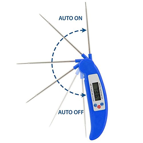 FOLDING & AUTO ON AND OFF - Internal Collapsible Folding Tapered Probe with Auto On and Off; Perfect for Meat, Liquid, Food, Candy Tempering in Kitchen and Outdoor Cooking.