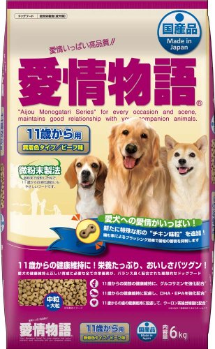 原材料:穀類(とうもろこし、小麦粉)、糟糠類(グルテンフィード、米糠、小麦ふすま、脱脂糠)、豆類(脱脂大豆、乾燥おから)、肉類(フェザーミール、チキンミール)、その他(アルファルファミール、酵母エキス、乾燥カモミール、乾燥ローズマリー、ウーロン茶抽出物、グルコサミン)、油脂類(動物性油脂、精製魚油(DHA・EPA源))、野菜類(乾燥にんじん)、魚介類(フィッシュエキス)、糖類(オリゴ糖)、ミネラル類(炭酸カルシウム、食塩、硫酸亜鉛、ヨウ素酸カルシウム、硫酸銅)、ビタミン類(A、B2、B12、D3、E、塩化コリン、D-パントテン酸カルシウム、dービオチン)