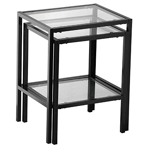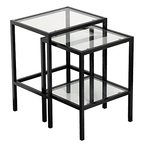 -. Brand : Yaheetech -. Color : Black -. EAN : 1007230258286 -. Feature : Large Table Dimension: 45.5 x 35 x 58.5 cm/ 18 x 13.8 x 23'' (WxDxH) / Small Table Dimension: 40.5 x 35 x 53 cm/ 16 x 13.8 x 20.9'' (WxDxH) / Material: Metal + Glass / Sold in a set of 2pcs metal glass nesting tables / The top and the lower shelf built with 5mm thick clear glass -. Label : Yaheetech -. Manufacturer : Yaheetech -. MPN : YT-00029255 -. PartNumber : YT-00029255 -. ProductGroup : Furniture -. ProductTypeName : HOME_FURNITURE_AND_DECOR -. Publisher : Yaheetech -. Studio : Yaheetech -. Title : Yaheetech Set of 2Pcs Glass Nesting Tables Living Room Sofa Side End Table Set Black Frame