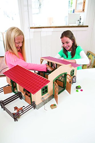 It's a wonderful day at the stables today. The sun is shining and the horses are grazing peacefully on the paddock. The stables are located in an idyllic spot on the edge of the forest, and the flowers are blossoming on the meadows and in the flowerboxes at the stables. Sarah is returning from a ride with Maya, her Mustang mare. She has just tried her new saddle – and it fits perfectly. She will now rub down and brush her beloved horse and then give her fresh feed and straw. Then she will have a quick snuggle with the little Mustang foal before heading back home after a long, wonderful day at the stables.Feature