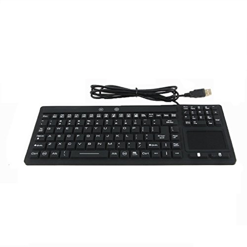 -. Feature : FULLY SEALED: This industrial keyboard has an integrated touchpad and is compatible with all hospital and Dental approved disinfectants / SLIM DESIGN: Slim washable keyboard perfect for home entertainment or industrial use. 106 keys including 12 F-keys and 10 number pad. / WATERPROOF IP67 RATED: Keyboard dust, water, chemical resistant and washable. / NO SOFTWARE TO INSTALL: Plug and play simplicity for Windows PCs, Plug the keyboard into your computer and start typing / ADDTIONAL FEATURES:High-quality silicone material, silky-smooth whisper-quiet keys.It left and right-click buttons below the touchpad, adding convenience and functionality