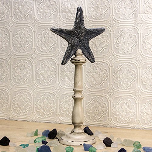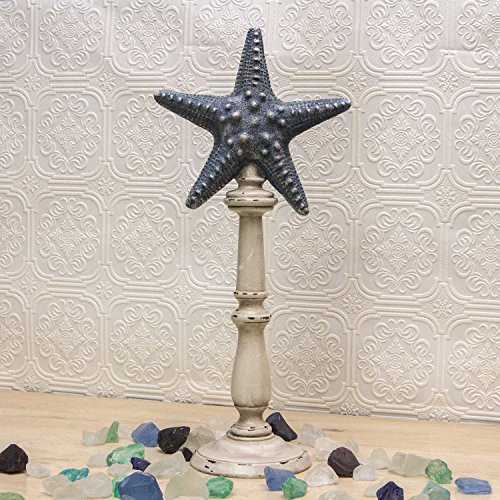 Sagebrook Home 12154-01 Starfish Sculpture On Stand, 7.5" x 4.75" x 17", Blue
