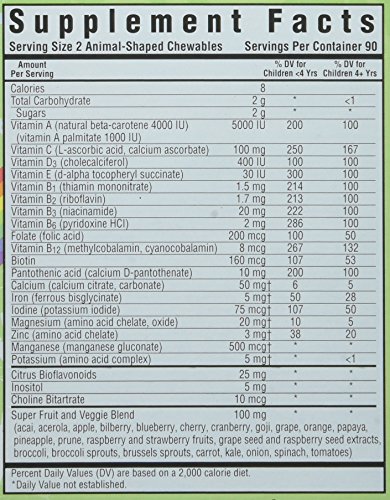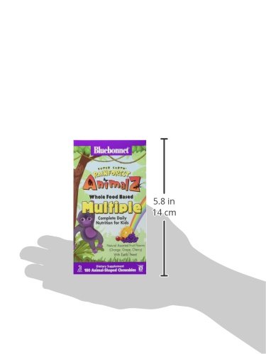 If children grew up in the rainforest, they'd get most of the nutrients for proper growth and development from whole foods like fruits, vegetables, whole grains and fish. Nutrients that are often missing from today's diets. Bluebonnet Super Earth Rainforest Animal Whole Food Based Multiple helps bridge this nutrient gap, providing important vitamins, minerals, super fruits and vegetables in two yummy animal-shaped chewable.Feature