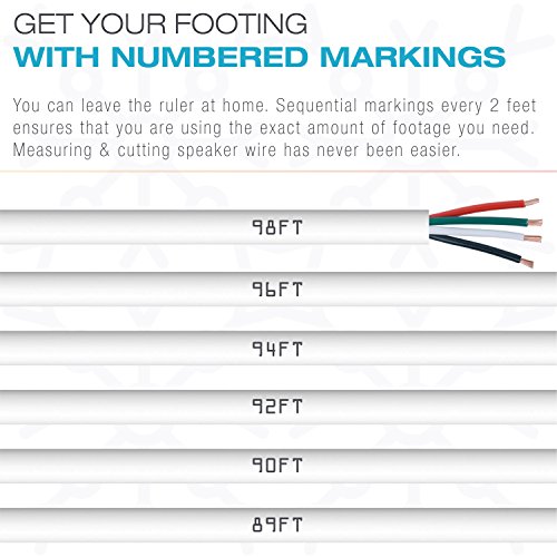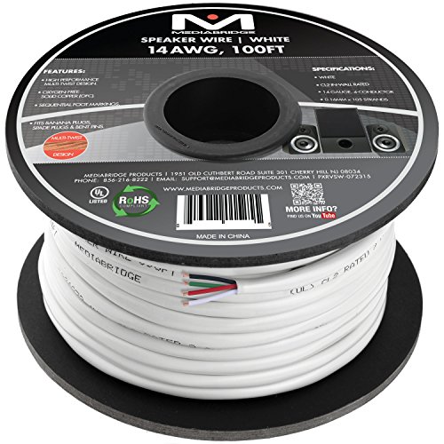 Mediabridge 14AWG 4-Conductor Speaker Wire (100 Feet, White) - 99.9% Oxygen Free Copper - UL Listed CL2 Rated for In-Wall Use (Part# SW-14X4-100-WH )