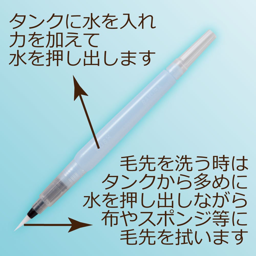 When washing the tip of the brush, rub the tip of the hair to paper, cloth, sponge etc while extruding water a little more from the water tank.