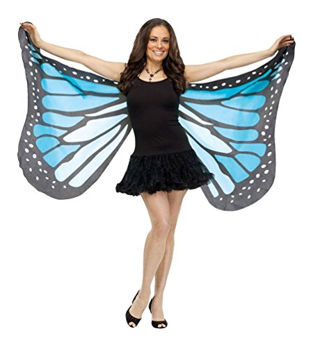 -. Brand : Fun World -. ClothingSize : One size -. Color : Blue -. Department : womens -. Feature : Includes blue, silky fabric wings with shoulder and finger loops. / Please note necklace, dress and shoes are not included. / Available in Adult Size One Size Fits Most. / Wings are only colored on one side. -. ProductGroup : Apparel -. ProductTypeName : ADULT_COSTUME -. Size : One size -. Title : Soft Butterfly (blue) Adult Wings -. UPC : 700987185430