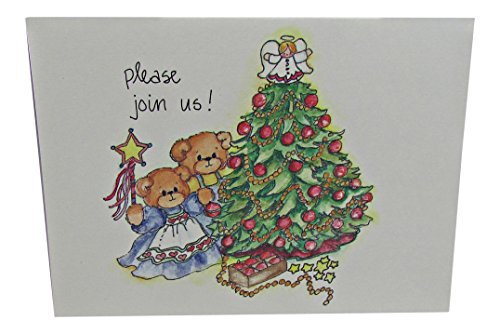 Festive Bear Couple by Christmas Tree Design Please Join Us Holiday Party Invitations - Pack of 10 with Envelopes