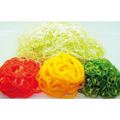 ●먹을 때의 느낌에 차이 있음!채치기(채친 양배추가 눈 깜짝할 새에 완성●양배추,오이,레몬,《우콘》 등의 다종다양한 야채에 대응에서 옵니다.●환칼의 초고속 유성 회전(1분간에 2,150회전)나와 놀라는 정도의 스피드 처리.●부드러운 춘양배추나 양상추도 예쁘게 끊어진다.●심플 구조에 청소,유지보수도 편안히입니다.●용도:양배추의 채치기(채친 슬라이스●부속품:환인(칼 따위를) 갊기●기계 치수:W340×L430×H510mm●투입구:φ70,φ200(변형 반월형)●정격소비전력:180/220W50/60HZ●중량:10kg●두께 조절:0,3mm~5,0mm(무단계)●사용 시간:연속●처리 능력:양배추5분간에 5~8알