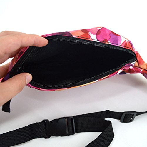 -. Feature : Made of high-quality oxford cloth and polyester lining; glossy to look, easy to clean and durable to use. / Product Size: 16.5 * 4.9 * 3.9in. Strap length: 17.3-27.3in. Adjustable strap fits different body waist and the adjustable waist belt can also used for shoulder strap. / Floral P.R.Inting looks fashionable and stylish, dresses up you full of personality. / One main zipper compartment with two zipper pullers and another little zipper pocket on the top.