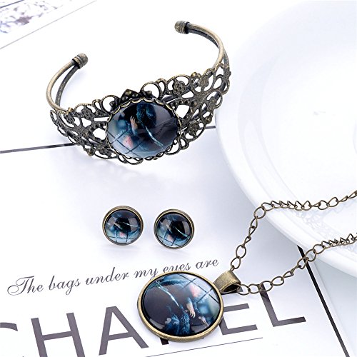 (LUREME)/Accessories/Belts Buckles/DIRECT FROM USA/Lureme Bronze Glass Time Gem Fantastic Beasts Stud Earrings Necklace Bangle Jewelry Set (js000730)