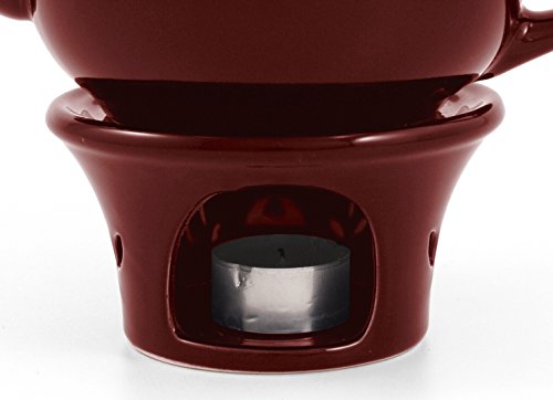 Studio : Old Amsterdam Porcelain Works Publisher : Old Amsterdam Porcelain Works Product Description We have had so many requests for our tea warmers that we now have them in every color of our teapots for the ultimate in matching sets or mix and match and just have fun! Just like our teapots the glazed ceramic teapot warmers are beautifully designed and allow for a candle tea light to sit in the interior compartment with an open window to allow your teapot to stay warm. This warmer will accommodate any of our ceramic teapots regardless of size. Condition: New Color: Burgundy Measurements: Teapot warmer 2.75T X5" W (4" inner rim) Care: Dishwasher Microwave Safe Candle not included 0