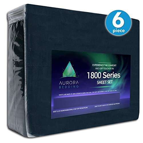Aurora Bedding #1 Best Selling 1800 Series 6 Piece Bed Sheet Set with Deep Pocket, California King, Navy
