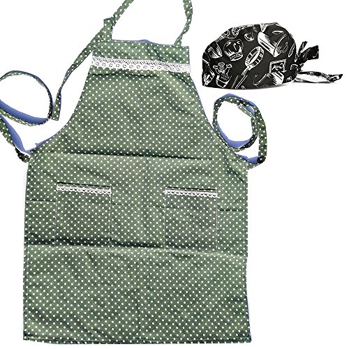 MEI SANG Garden Aprons with pocket ,Green and white striped Chef Apron For Men And Women and one Pirate chef Hat (Green )