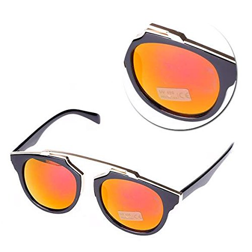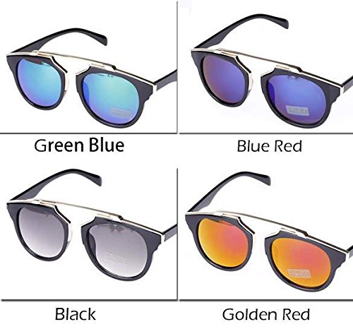 - Feature : Material: Resin and Plastics / Size (L x W): 14.3 x 5.2cm/5.58 x 2.03''(Approx) / Lens Length: 5cm/1.95''/Function: Anti-UV, Anti-Glare/Suits for long-time wearing. / 4 Colors Available: Black, Blue and Red, Green and Blue, Gold and Red / New Fashion Women's Sunglass Retro Vintage Design Plastic Frame Travel Outdoors Lady Glasses