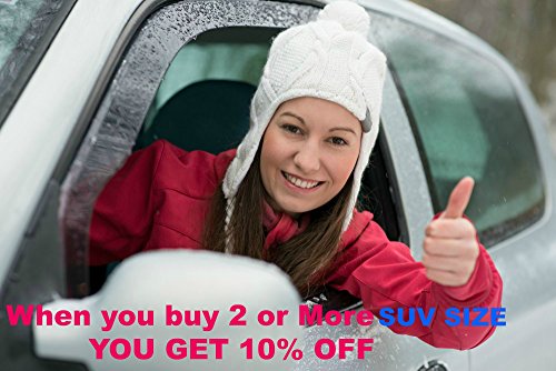 - Feature : NO MORE FROZEN FINGERS scraping frost and ice or snow removal on cold mornings - Just peel back cover and shake out for a clean screen. REVERSE SIDE for Car Sun Shade Protector - EASY TO FIT to car windshield - TWO SIZES FIT MOST VEHICLES - Medium for Cars and CRVs - Large for SUVs, Trucks and RVs / 8 MAGNETS NOT 5, so won't fall or blow off. SUCTION CUPS for anti-theft and smooth closer fit to windshield. Less chance of ice build-up under the car cover - These are luxury automotive accessories to have in bad weather / INNOVATIVE SHAPE - EXTRA LONG SKIRT covers car wipers, sprayers and hood - Save on gas and washer fluid - No more defrosting - NEW SIDE WINGS secure to inside windshield - A custom fit every time - Best waterproof outdoor protection for your vehicle / BONUS GIFTS - Microfiber Demisting Cleaning Cloth PLUS Emergency Survival Blanket - Stay warm and stay alive - Handy car exterior accessories to keep in all autos and recreational vehicles - Perfect CHRISTMAS HOLIDAY GIFT / DURABLE WATER RESISTANT material GUARANTEED for long life plus zip bag for easy compact storage - WOMEN no more brush, broom or shovel snow from your car windshield again - Wave to your neighbors left scraping as you drive away with an easy clean screen - COMPLETE THE SET WITH the SnowOFF Car Side Mirror Covers