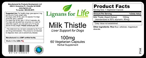 Milk Thistle is used for its antioxidant and anti-inflammatory properties. It helps support a healthy liver. It may help combat gallstones and other liver related issues. Research also indicates that milk thistle and silymarin can protect against cell damage. Recommended dosage for healthy dogs is approximately 2 mg of milk thistle for each pound of dog's weight. For dogs with elevated liver enzymes and/or in need of extra liver support, you may give up to 10 mg per pound of body weight. Please consult your vet for dosage suggestions. For dogs under 25 lbs, give 1/2 capsule per day. For dogs 25-50 lbs, give 1 capsule per day. For dogs over 50 lbs, give 1 1/2 to 2 capsules per day. Capsule can be administered whole using peanut butter, cheese, a pill pocket, etc. or capsule can be opened and sprinkled on dog's food. Always consult your vet when giving your dog new supplements. For a list of our complete products, including similar items in different dosages, visit our amazon storefront link at www.amazon.com/shops/productsdevelopmentFeature