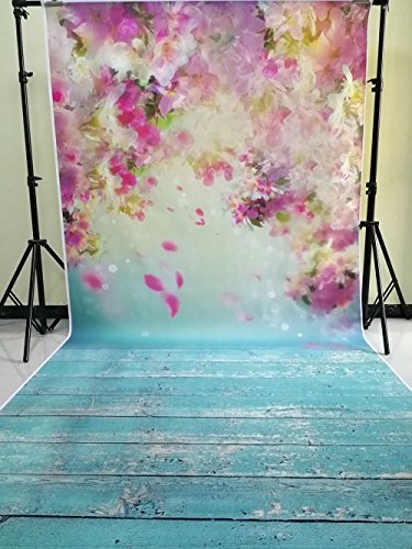 HUAYI 5x10ft Flower wall pink Photography Backgrounds Newborn Photo Studio Green Wood Floor YJ-192