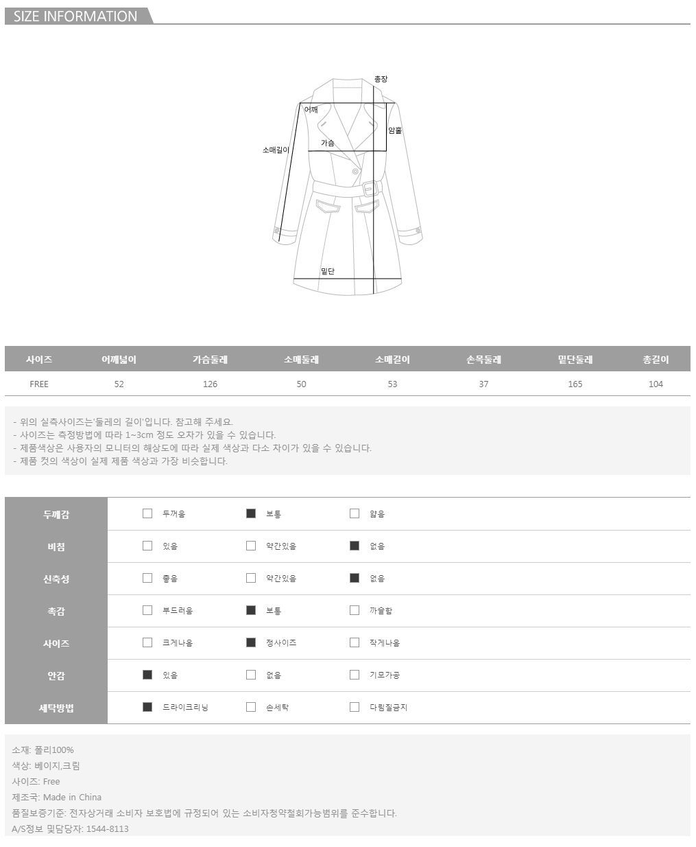 컬러는 베이지,크림 2color로 구성되어 있으며,