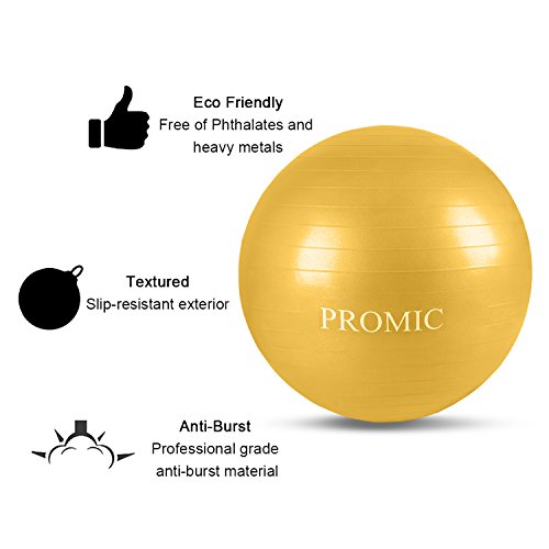 Studio : DVC Publisher : DVC Binding : Misc. Product Description ????Buy with confidence from PROMIC - has over 3,000 positive ratings.?? ????PROMIC Anti Burst Slip Resistant Balance Ball with Quick Foot Pump When it comes to fitness equipment, there's little that works your whole body better.Go ahead - have a PROMIC stability ball. Use it in combination with a variety of exercises to engage all your muscles, which builds strength and improves stability. ??Designed to withstand daily professional gym abuse - Durable. Made of high-quality rubber, the balance ball provides long-lasting dependability. - Supports 1100 LBS so you never have to worry about using weights - Anti-Burst tested to sustain a 2CM cut - Easy Cleaning Surface with Anti-Slip Ridges - Guaranteed to inflate to the Published Size - Quick Foot Pump Included