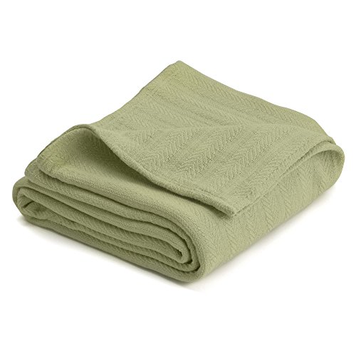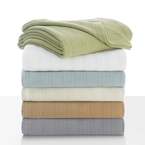 COTTON WOVEN BLANKET BY VELLUX - Natural, Cozy, Warm, Chevron Textured, Pet-Friendly, All-Seasons - Winter Pear