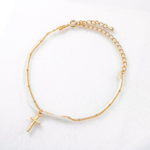 -. Title : メタルクロス ネオンカラー&キラキラチェーン2連アンクレット【お肌に優しいニッケルフリー】 ネオンホワイト (a9143-WH)