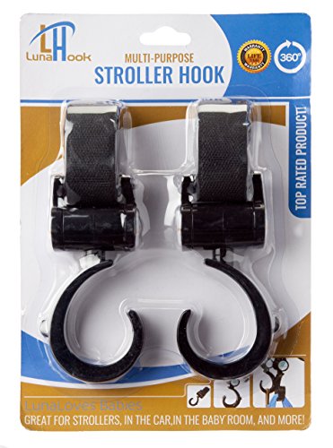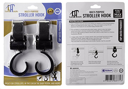 - The Luna Hook is a parents best friend allowing an extra "hand" for that heavy shopping, diaper, or other bag. - The Luna Hook is STRONG and durable. It swivels 360 degrees to allow for easy access to your items. - The Luna Hook can attach to ANY stroller handle. Accompanied with the swivel and easily adjustable straps, it is an easy way to get more cargo capacity on your stroller for those busy days. - You can rest assured that the Luna Hook is durable. If you are not happy with it, we offer a 100%, no hassle return policy for the lifetime of the product. - See why parents LOVE Luna Branded items and place your order today by clicking on the "add to cart" button.