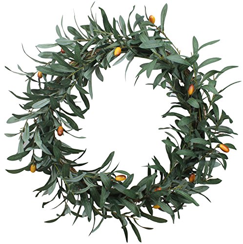 Duovlo 20'' Artificial Olive Wreath Front Door Wreath Greenery Branches Hanging Decoration