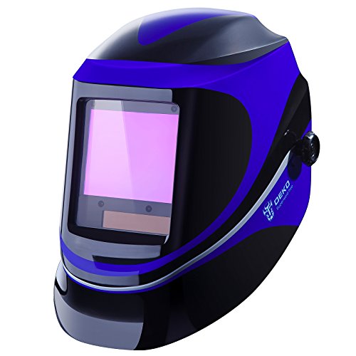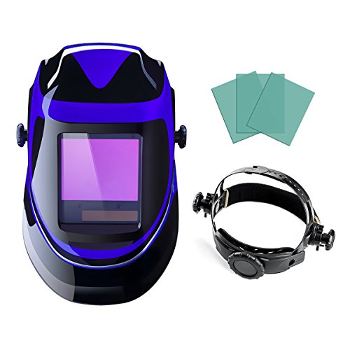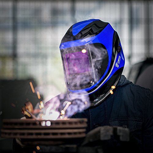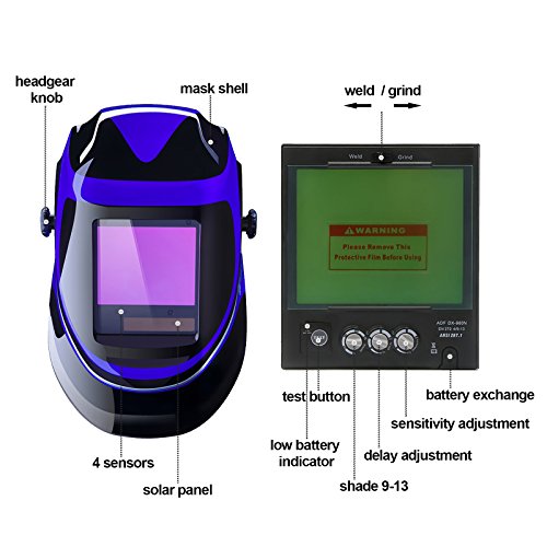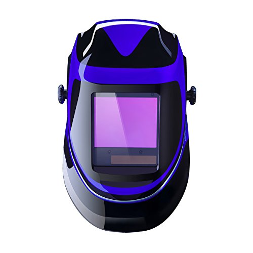 Solar Powered Welding Helmet Auto Darkening Professional Hood with Wide Lens Adjustable Shade Range 4/9-13 for Mig Tig Arc Weld Grinding Welder Mask (Blue)