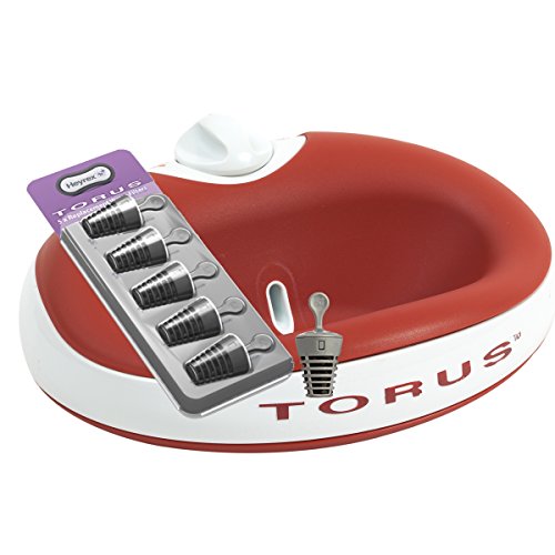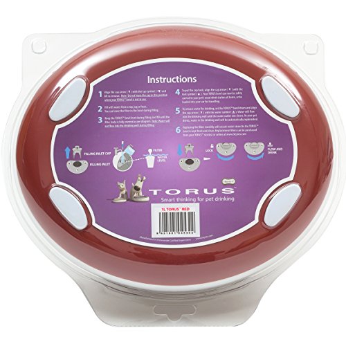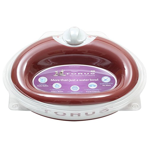 Heyrex is proud to showcase the Torus, the Ultimate Pet Water Bowl. This ergonomically-designed water bowl for dogs holds up to a quart (32oz) of carbon-filtered water in its reservoir located within the bowls ample walls. The hidden reservoir protects your pets water from dust and outside contaminants. Torus keeps your pet's water fresh and clean with its patented self-filling design. Water automatically flows from the storage area, through a filter and into the drinking well. No batteries or electricity are required. Your Torus water bowl is completely mobile and perfect for taking in the car for clean, fresh water on-the-go. Replacement filters are supplied in packs of 5, each filter gives a month clean water for your dog. The Torus bowl's super-thick walls provide a reservoir to ensure water is kept cooler for longer. The ergonomic design prevents spill and its lockable water supply makes it easy to take traveling. Torus is exceptionally stable. Its low profile geometry and soft rubber feet help prevent accidental spills. The water level in the drinking well is always high enough to allow easy drinking yet low enough to minimize water spills and splashes. Torus is a go-anywhere bowl. The valve position when locked secures stored water inside the walls so you take Torus with you wherever you go. It's completely mobile and ideal for trips to the park, beach, snow, camping, RV or anywhere! Torus Features: