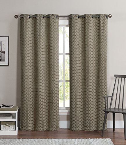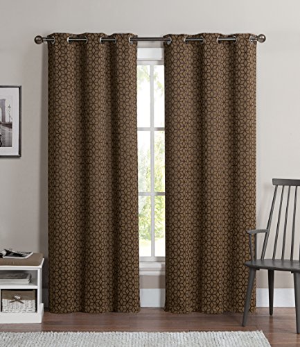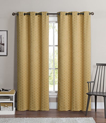 Want to know more? • Includes 2 heavy-duty woven grommet blackout panels • Made from 100% hotel-quality polyester • Woven jacquard fabric features a delicate scroll and geometric design • Keep cold air out in winter months and will trap cold air inside during the summer • Block up to 99% of outside light • Easy to hang • Machine washable • Each panel measures 38 in. W x 84 in. L (76 in.W total)Feature