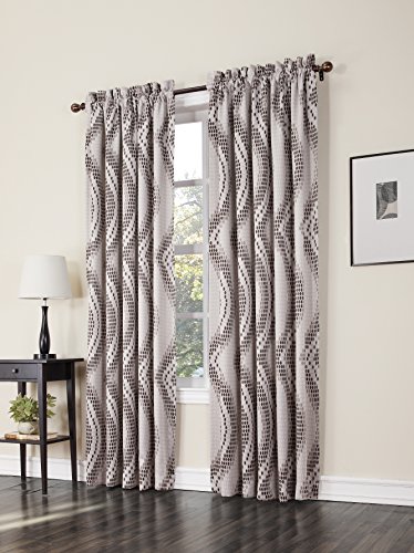 Sun zero Jeff is a geometric wave print in warm neutral tones on a room darkening panel. Jeff is energy-efficient and helps reduce the sun's rays from your room as well as protect your home from the heat and cold. Room-Darkening panels are made of materials that reduce light, and considerably darken the room. Some light will show through. These materials do not allow a view through and provide complete privacy. The darker the color the better the light reducing capabilities.Feature