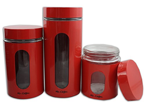 -. Title : Mr Coffee Java Bar Glass Canister Set - Red
