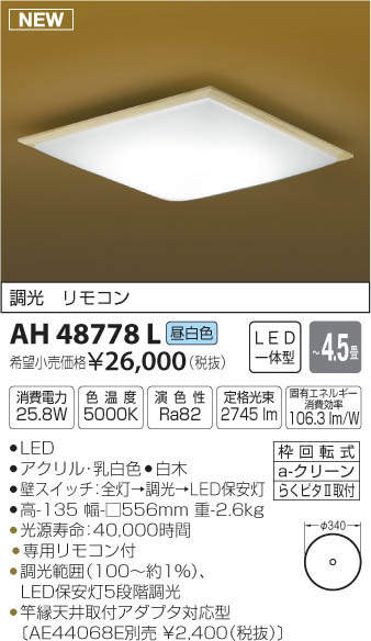 ●竿縁天井取付アダプタ対応型〔AE44068E別売 \2,400(税抜)〕