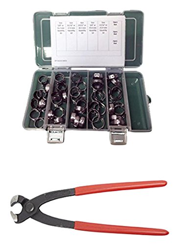 Oetiker Stepless OET162210-50PCK-EP Clamp Assortment Case, Ear Clamps, Single Ear Hose Clamps with Pincers, 5/8"-13/16" (Pack of 50)