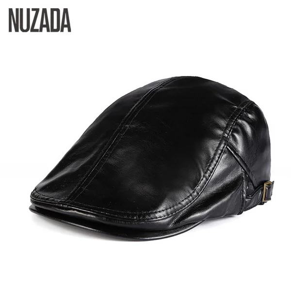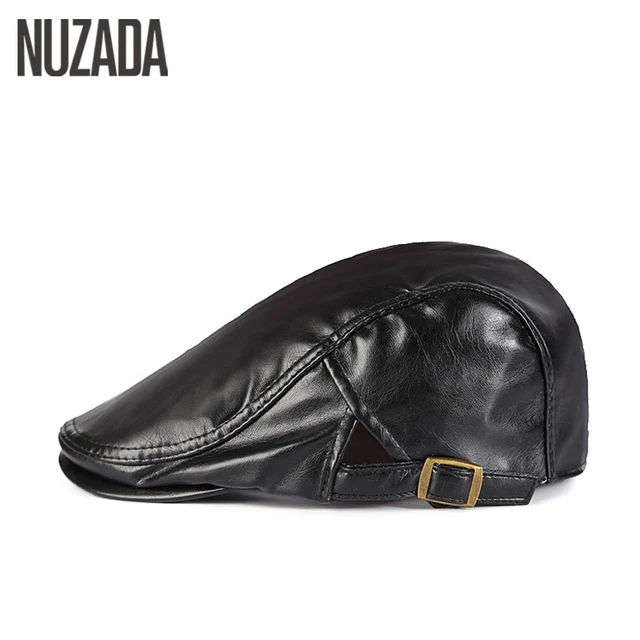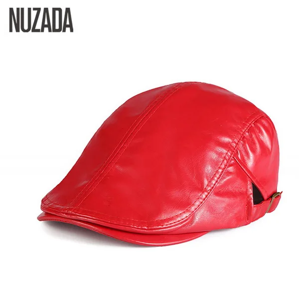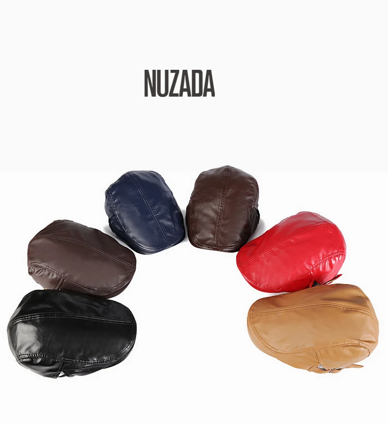 | [해외]Nuzada 인공 pu 가죽 베레모 모자 남여 남성 여성 플랫 바이저 캡 boina 5 단색 클래식 수 조정 cap |