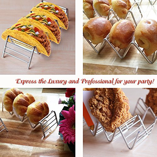★★ PREMIUM QUALITY STAINLESS STEEL DESIGN: Express the Luxury and Professional for your party with friends and customers. Metal taco holder Delicately designed, Perfect to serve on the table to make your Tacos really Fascinating and Delicious.