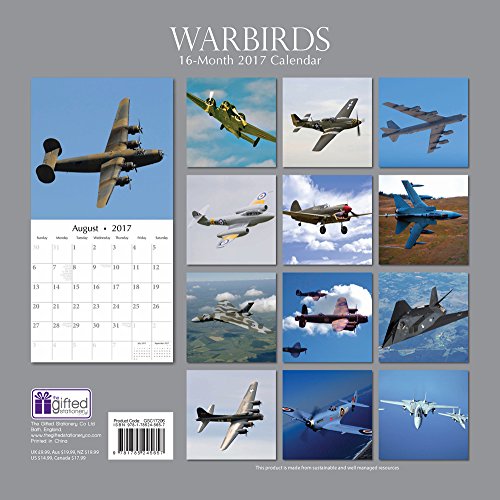 Vintage Military Aircrafts - Warbirds 2017 Monthly Wall Calendar, 12" x 12"