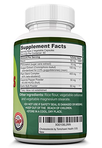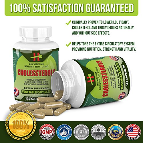 Lower Cholesterol Naturally with 400 mg Plant Sterols, 50mg Cayenne and Garlic Plus More - 60 Day Supply of 120 Capsules Lowering Your LDL Has Never...