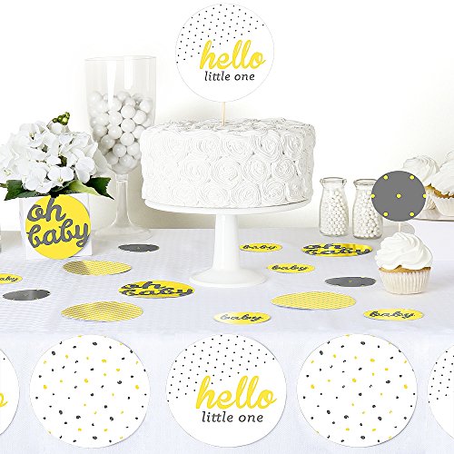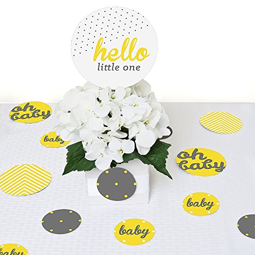 -. Title : Hello Little One - Yellow and Gray - Neutral Baby Shower Giant Circle Confetti - Party Decorations - Large Confetti 27 Count