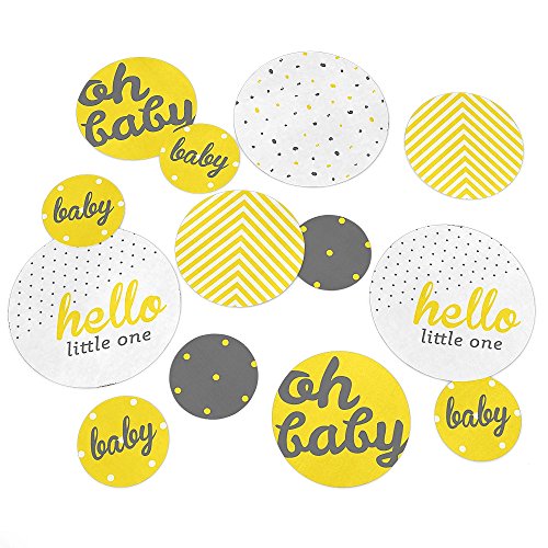 -. Feature : Hello Little One Giant Circle Confetti INCLUDES 27 large Yellow and Gray baby shower confetti. Hello Little One - Yellow and Gray decorations are perfect for a neutral baby shower. / Hello Little One - Yellow and Gray giant circle confetti SIZE 5.5 inches large circles, six qty; 4.25 inches medium circles, nine qty; and 2.75 inches small circles, twelve qty. The unique design and large size makes these hello world party decorations an impressive addition to any baby shower. / EASY TABLE DECOR: Hello Little One - Yellow and Gray giant circle confetti comes in a variety of coordinating patterns in three different sizes. Scatter them down the length of your party tables, add them to centerpieces or hole-punch them and string together as a baby shower banner. Hello little one paper confetti pieces will make a statement however you choose to use them. / PREMIUM PARTY SUPPLIES: Hello Little One - Yellow and Gray giant circle confetti are professionally P.R.Inted on heavy-duty cardstock paper with a photo-like shine. They individually inspected and carefully packaged by hand. Giant table confetti will arrive flat. Get creative with your DIY party ideas! / MADE IN THE USA: Hello Little One - Yellow and Gray - Neutral Baby Shower - Giant Circle Confetti is designed and manufactured at our Wisconsin facility using materials that are Made in America.