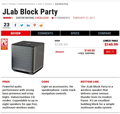 JLab Audio Block Party Wireless Multi-room Bluetooth Speaker