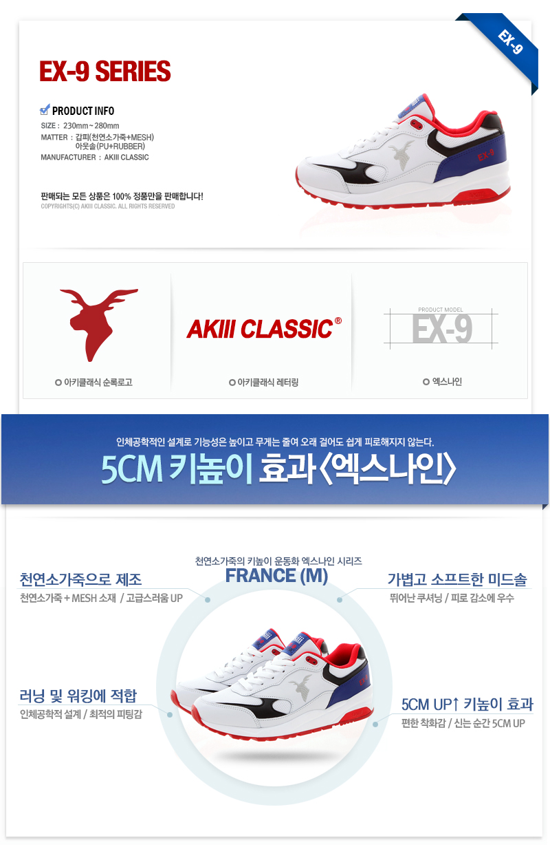 제품素材갑피: 천연소가죽+MESH , 아웃솔: PU+RUB