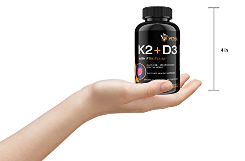 Higher concentration of K2 Vitamin - 10% more Vitamin K2 MK7 than other similar formulas 3-Months Supply - Get more of the K2 + D3 goodness for your hard earned dollar BioPerine® Black Pepper Extract - Added for increased absorption to make all other ingredients work better Organic Brown Rice Powder - Acts as organic flow agent providing higher purity to our formula GMP CERTIFIED - All Vital Formulas Labs products are manufactured in an FDA certified facility in the USA, and are non GMO, so you can trust our products are the highest quality!