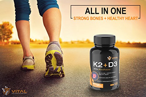 HEALTHY HEART & STRONG BONES - Many of the heart problems are direct result of calcification also known as "hardening of the arteries". This occurs when calcium deposits form in the arteries instead of the bones. Vital K2 + D3 supplement formula ensures proper distribution of Calcium in your bones as Vitamin K2 (as MK-7, the most bioavailable & absorbable form) directs Vitamin D3 to absorb Calcium in your bones as opposed to your joints and arteries where too much Calcium may cause calcification or other heart / cardiovascular issues.
