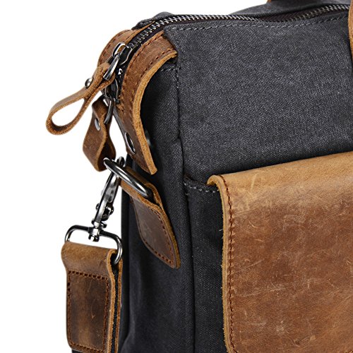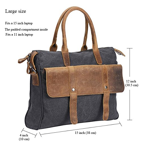 -. Feature : Storage Pockets: Multi Accessory storage pockets for mouse, iPod, cell phone, pens or cards / Adjustable: A removable shoulder strap included so you can use it as a cross body bag / Pure Canvas Material: Made of high density canvas material and crazy horse genuine leather, Sturdy canvas lining inside. Strong stitching handcrafted for long lasting durability / Classic Look: Vintage and stylish appearance makes it perfect for business, school, or gift ideas / Best Size Availability: The main compartment fits all up to 15 inch laptop or tablet brands like iPad, MacBook, MacBook pro, Samsung, HP, IBM, Sony, Lenovo, Asus, Dell, Acer etc; And the padded compartment fit an up to 11inch tablet or laptop