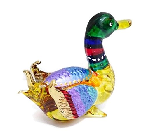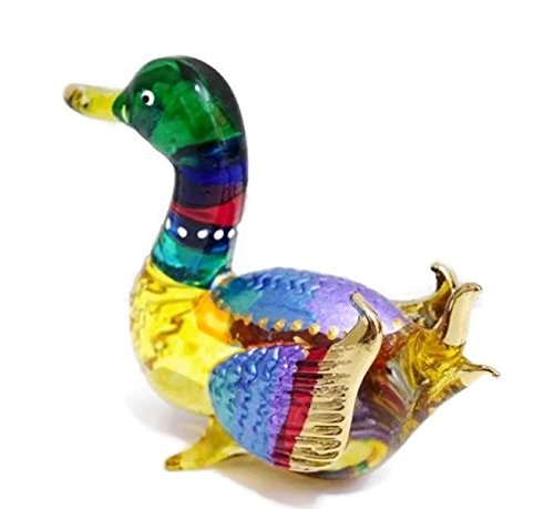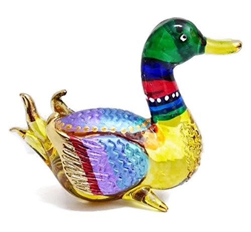 MINIATURE DUCK HAND BLOWN CLEAR GLASS ART DUCK FIGURINE ANIMALS COLLECTION GLASS BLOWN FBM